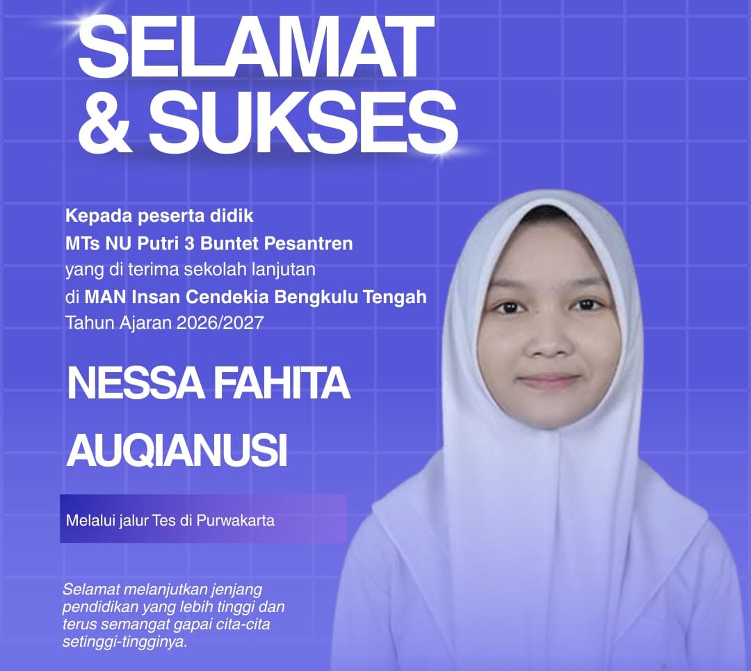 Semoga MTs NU Putri 3 Buntet Pesantren Cirebon bisa berkembang dan maju sehingga bisa mencerdaskan generasi yang berakhlak mulia.